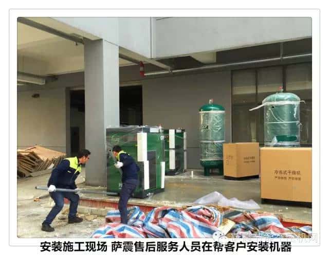 薩震空壓機(jī)的服務(wù)工程師們?yōu)樵摴具M(jìn)行機(jī)器安裝和開機(jī)調(diào)試。