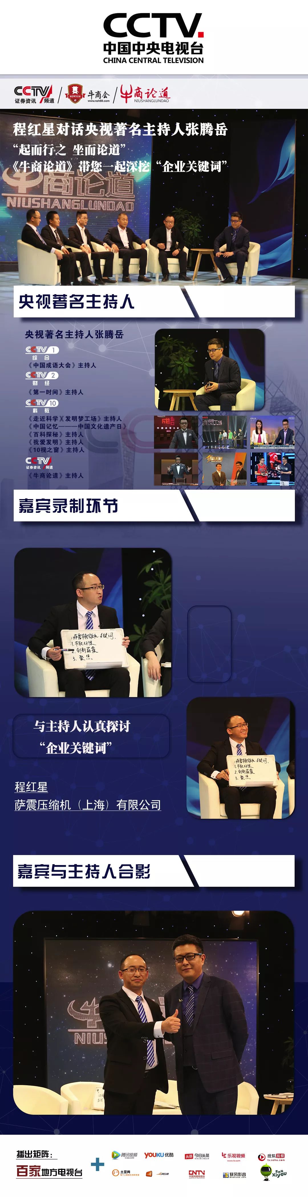 薩震壓縮機(jī)(上海)有限公司總經(jīng)理程紅星,作為第七屆上海十大牛商受邀參加央視CCTV《牛商論道》節(jié)目,與來自全國的牛商大咖,央視著名主持人張騰岳一起坐而論道。