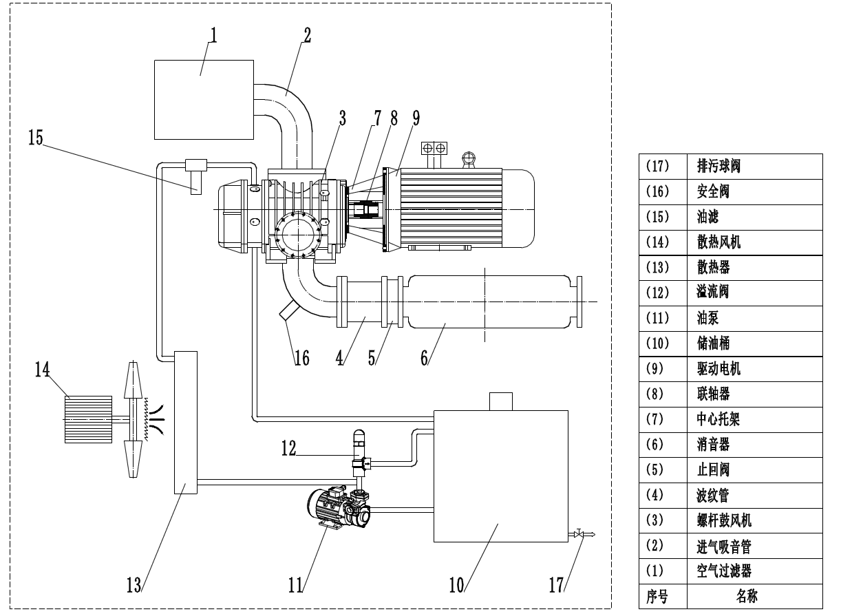 (薩震永磁變頻無(wú)油螺桿鼓風(fēng)機(jī)流程圖)